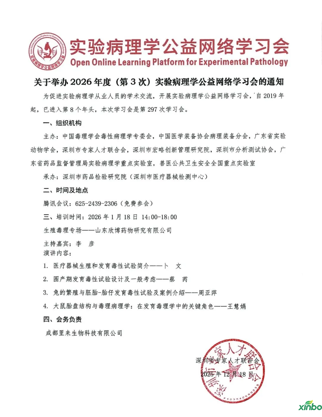 Announcement・Xinbo Special Session | Reproductive Toxicology Special Session - 2026 Annual (3rd) Experimental Pathology Public Online Learning Conference