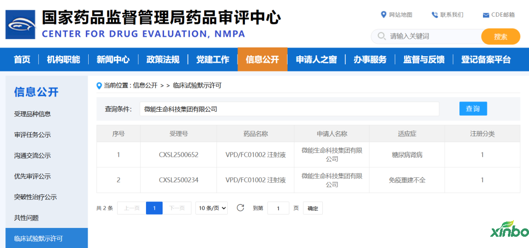 根据国家药监局药品审评中心(CDE)官网以及公开资料,山东欣博药物研究有限公司(以下简称“山东欣博”)助力微能生命科技集团有限公司(以下简称“微能生命”)研发的两项干细胞创新药临床试验批件——“VPD/FC01002注射液”(亚全能干细胞,受理号:CXSL2500234、CXSL2500652),涵盖艾滋病与糖尿病肾病两大难治领域,这是我国首个获批临床的干细胞治疗艾滋病的药物,以及山东省首个获批临床的干细胞治疗糖尿病相关疾病的药物。
