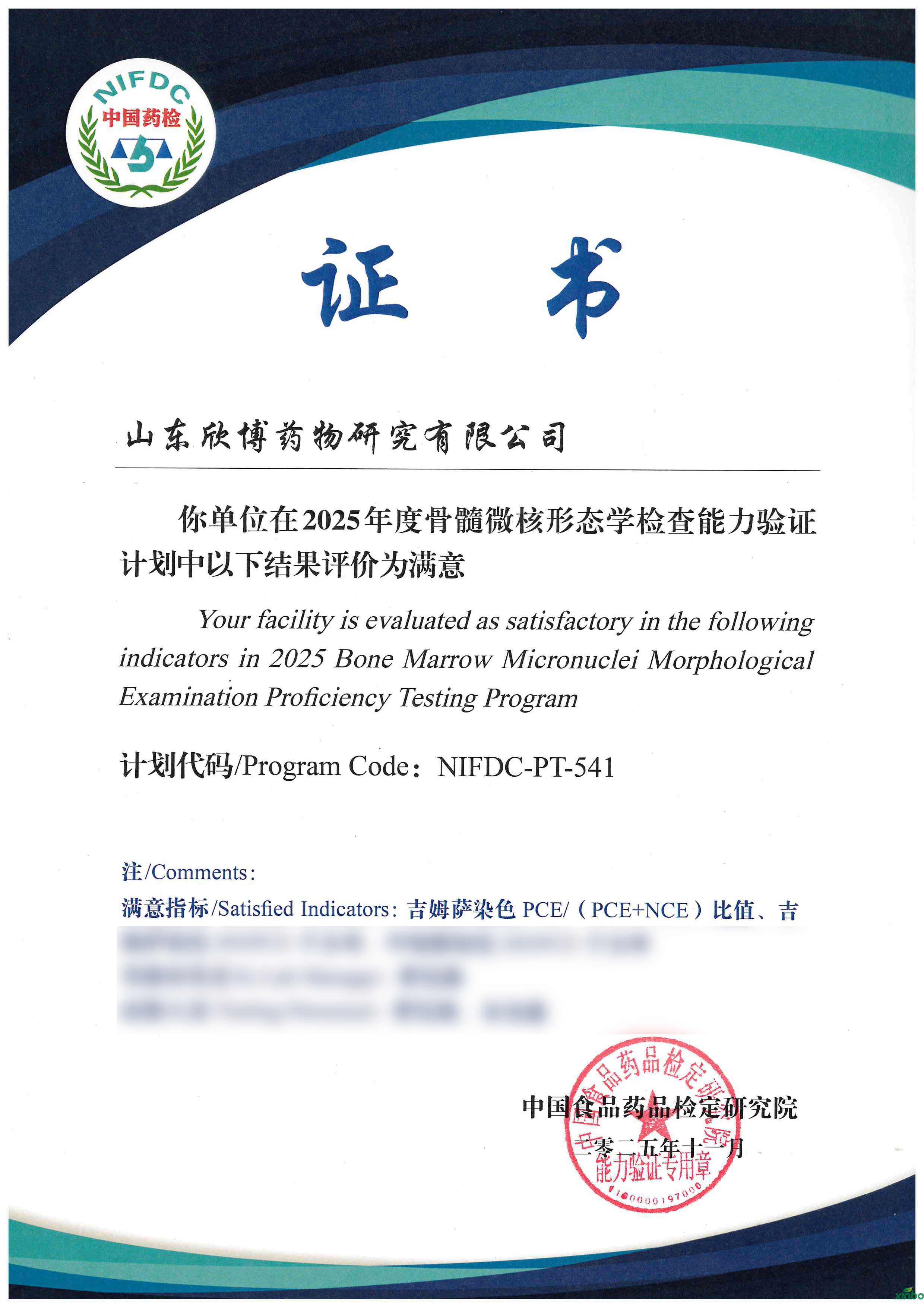 Strength Certification | Shandong Xinbo's Bone Marrow Micronucleus Morphological Examination Ability Verification Achieves' Satisfactory 'Results