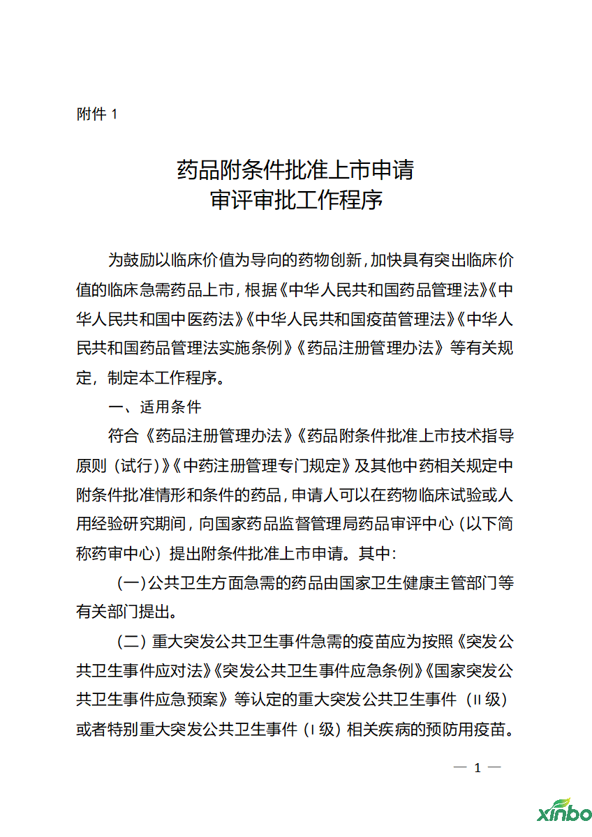附件1:药品附条件批准上市申请审评审批工作程序